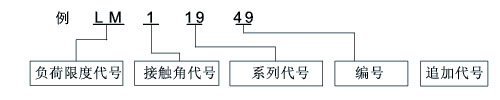 公制系列的中錐角型軸承及大錐角形軸承, 分別將接觸角代號C和D記于內徑代號的后面。普通錐角軸承不標記接觸角代號、中錐角型軸承主要用于汽車差動裝置的小齒輪軸。